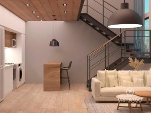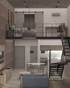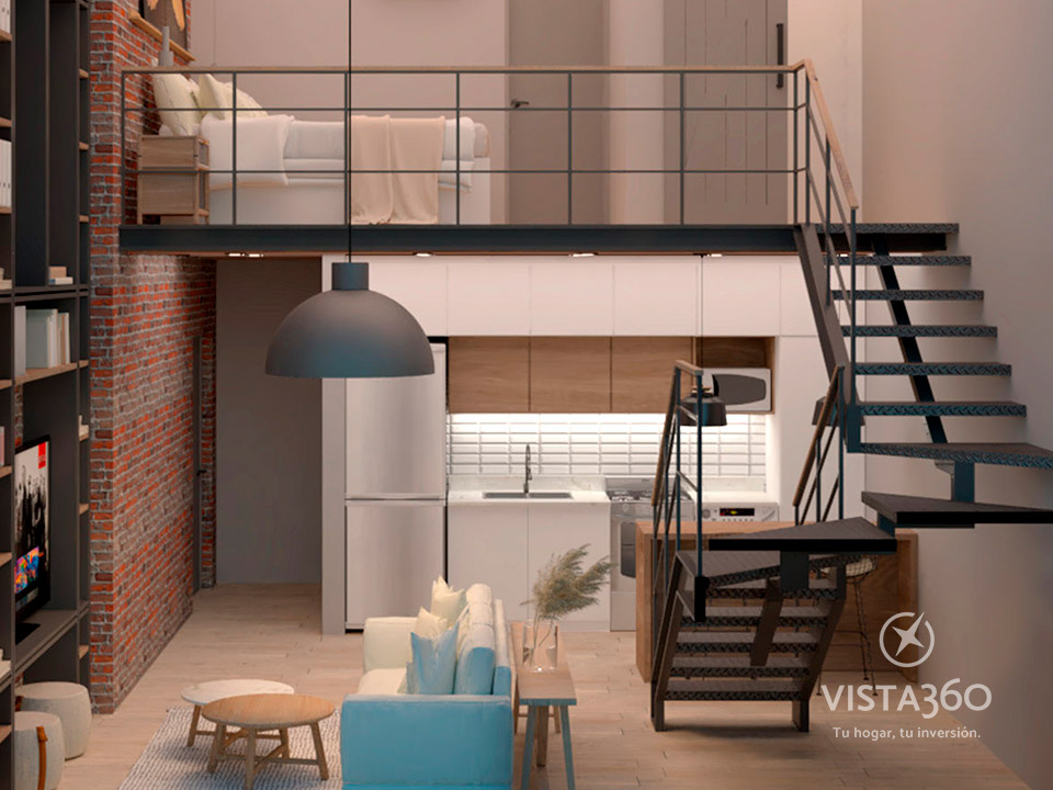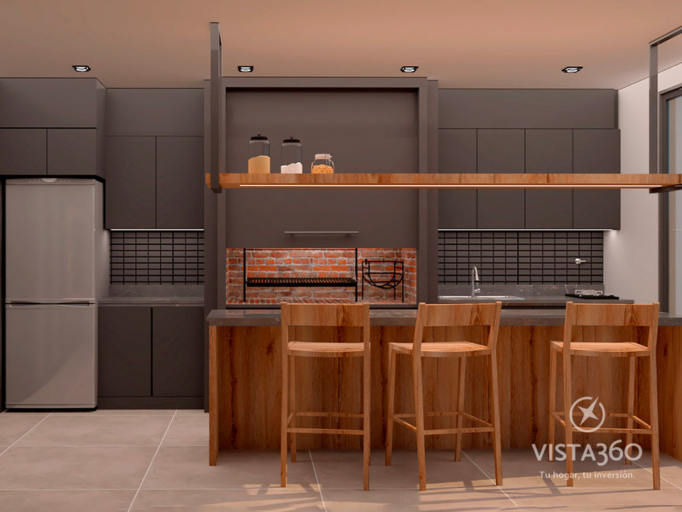 Cada loft cuenta con mobiliario a medida y un balcón con parrilla individual, ideal para disfrutar del aire libre.